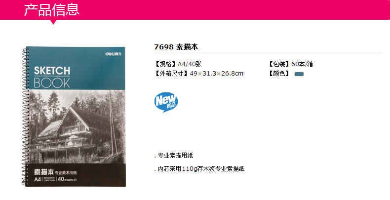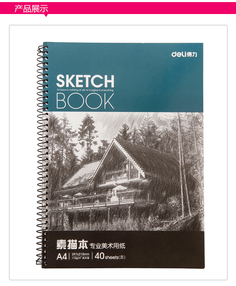 - 商品名称:得力7698素描本 A4专业美术用纸 40页