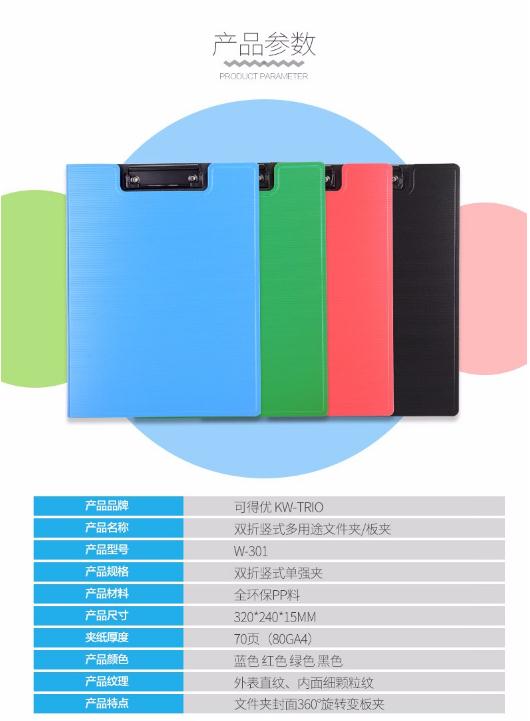 商品名称:可得优 W-301 双折多功能文件夹 蓝色