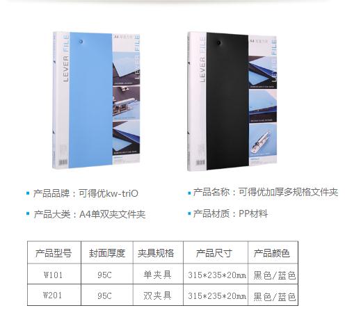 商品名称:可得优 W-101 PP文件夹 单强力夹 黑色