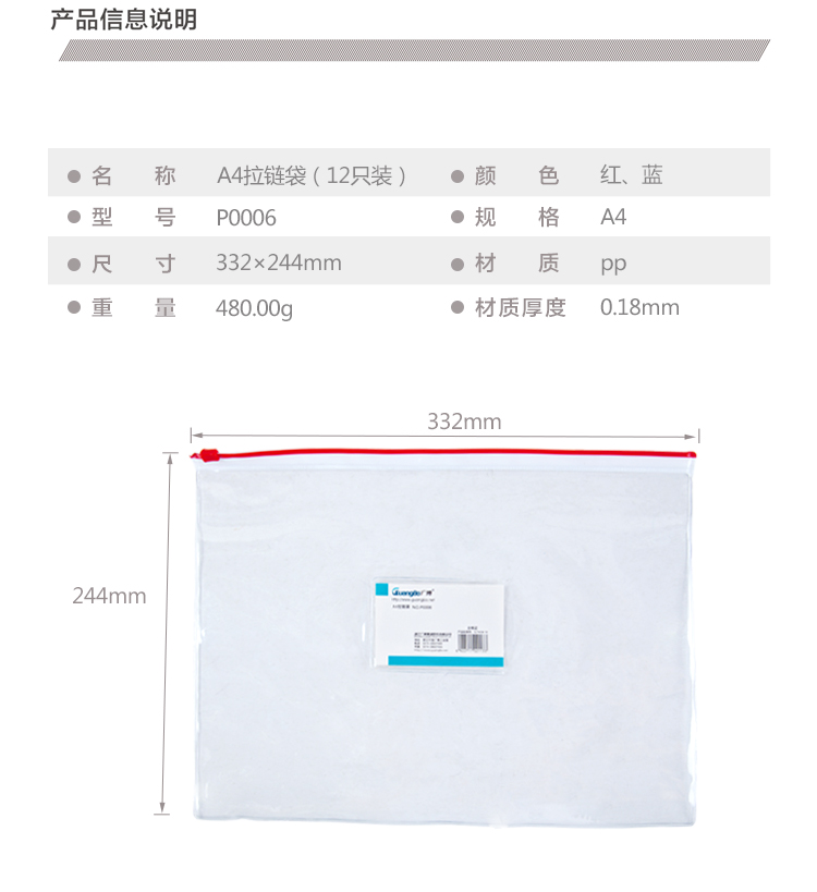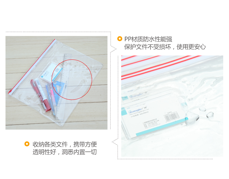 商品名称:广博 P0006 A4透明PVC拉链袋