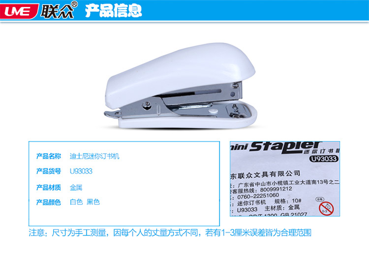 商品名称:联众U93033迷你型省力耐用订书机