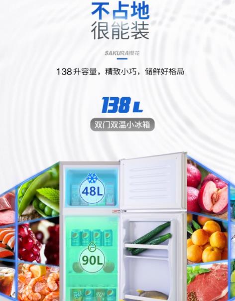 樱花(SAKURA) 电冰箱小型迷你两门家用宿舍租房冷冻冷藏保鲜节能 BCD-138(78A2)升宿舍家用小冰箱