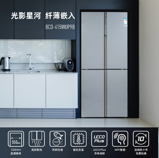 商品名称:美菱 BCD-415WUP9B 十字对开冰箱 星河银