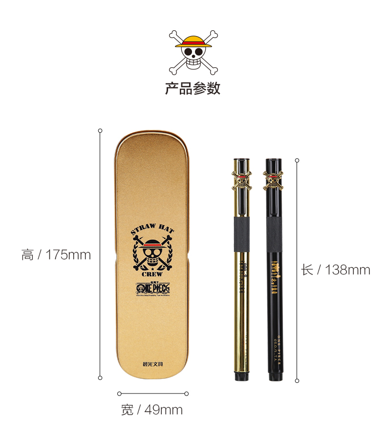 - 商品名称:晨光 QFPY1710 海贼王金属钢笔航海王文具中小学生0.38练字钢笔盒装办公吸墨钢笔 晨光限定钢笔 金色钢笔+墨水