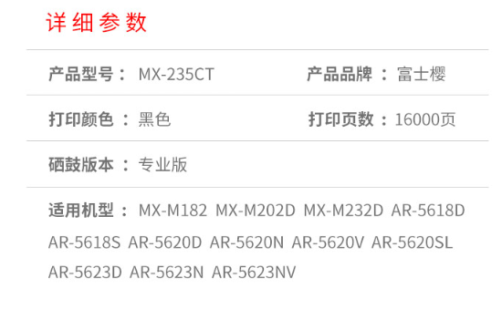 商品名称:富士樱 MX-235CT 高容量墨粉盒 适用夏普 MX-M202D M232D M182 AR-5618 AR-5620 AR-5623(D/S/N/V/SL)