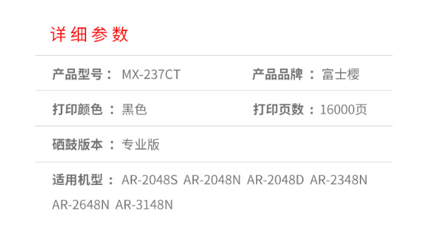 商品名称:富士樱 MX-237CT 黑色大容量墨粉盒 适用夏普 AR-2048S AR-2048N AR-2048D AR-2348N AR-2648N AR-3148N
