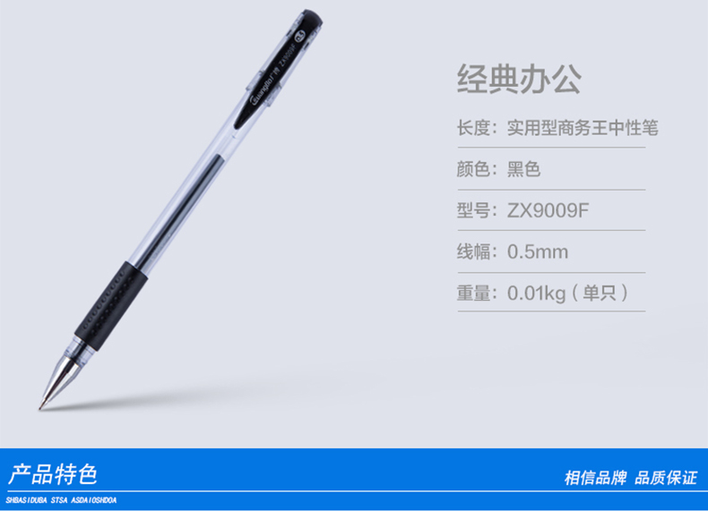 商品名称:广博(GuangBo) ZX9009F 中性笔签字 水笔 0.5mm 黑色 (计价单位:支)