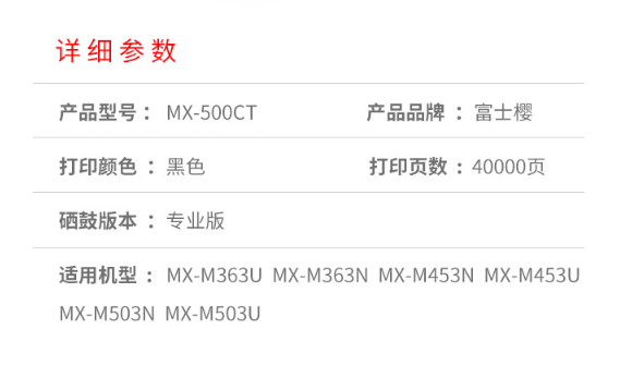 商品名称:富士樱 MX-500CT 大容量墨粉盒 适用夏普 MX-M363U/363N MX-M453U/453N MX-M503U/503N 黑色复印机碳粉盒