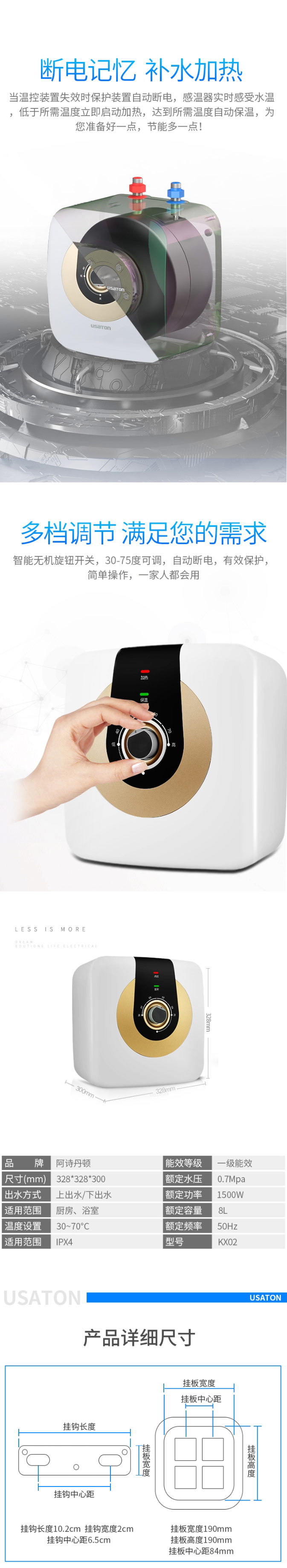 商品名称:阿诗丹顿 KX08-8J15X 储水式电热水器 小厨宝