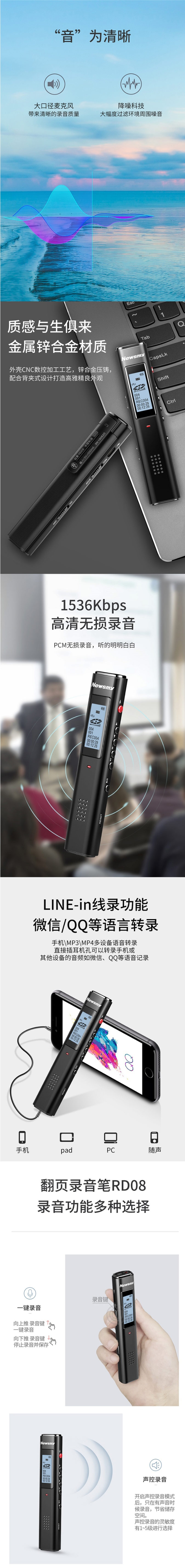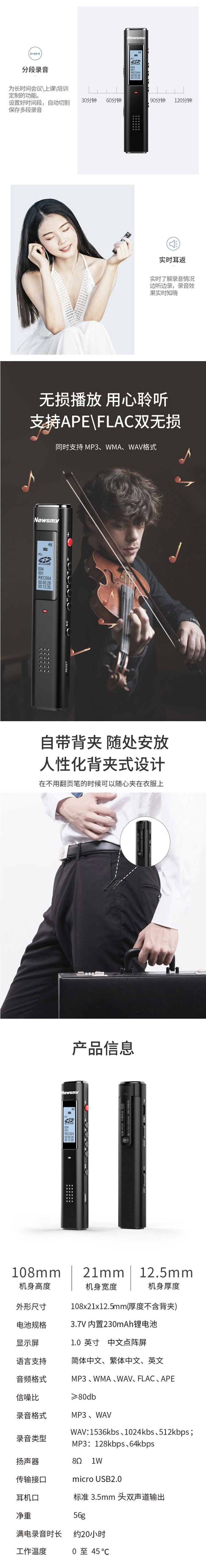 商品名称:纽曼(Newmine) RD08录音笔专业高清降噪学生上课用商务会议激光翻页PPT无线 16GB