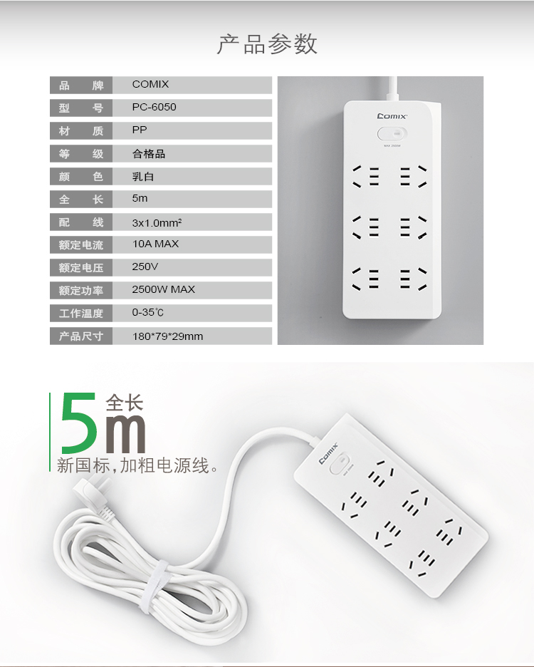 商品名称:齐心PC-6050排插