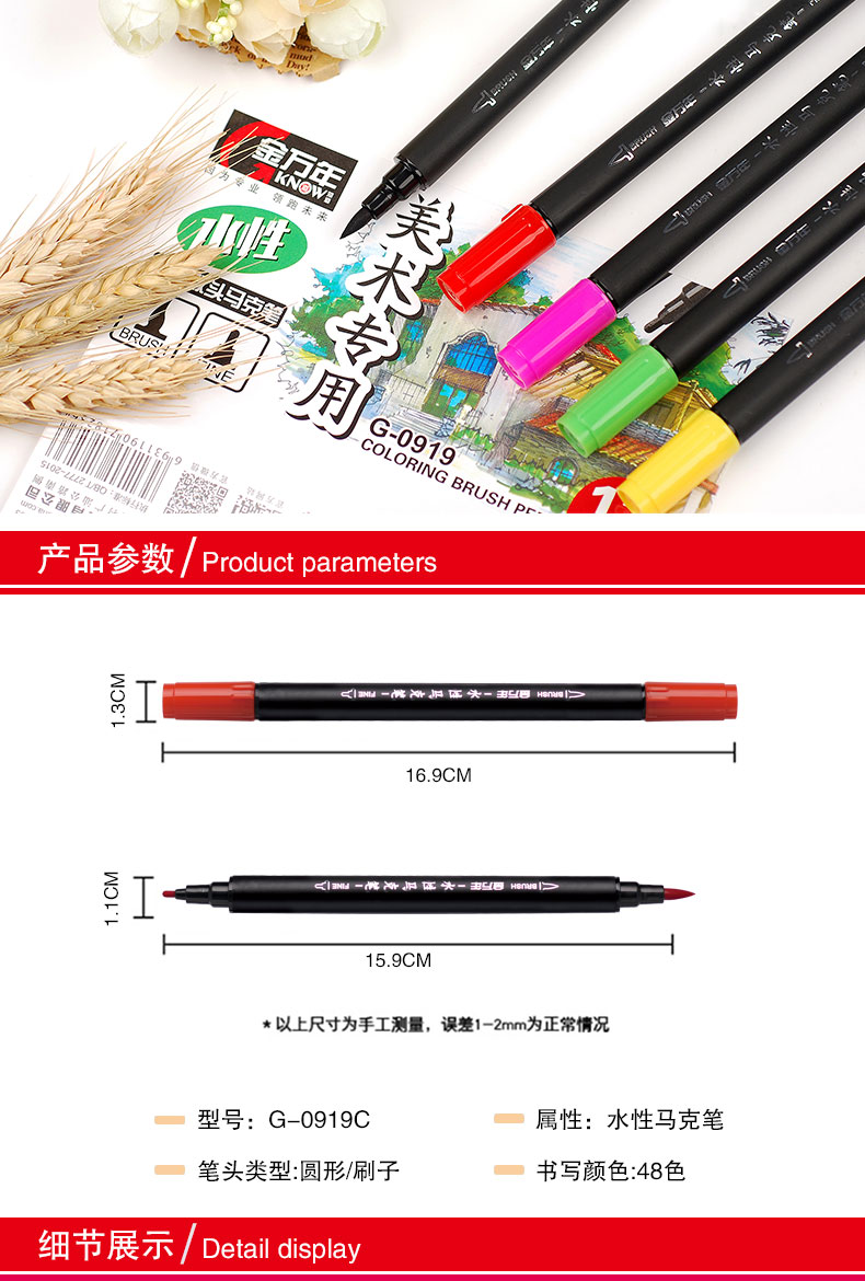 - 商品名称:金万年水溶性12/24/36/48//72色软硬头马克笔美术绘画秀丽笔涂鸦笔 G-0919 48色套装 软硬双头 G-0919C (计价单位:套)