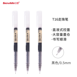 白雪(snowhite)T16 12支/盒 0.5MM黑色速干直液式走珠笔中性笔 (计价单位:支)
