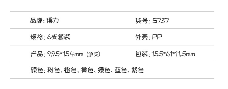 商品名称:得力(deli) S737 6色双头荧光笔套装