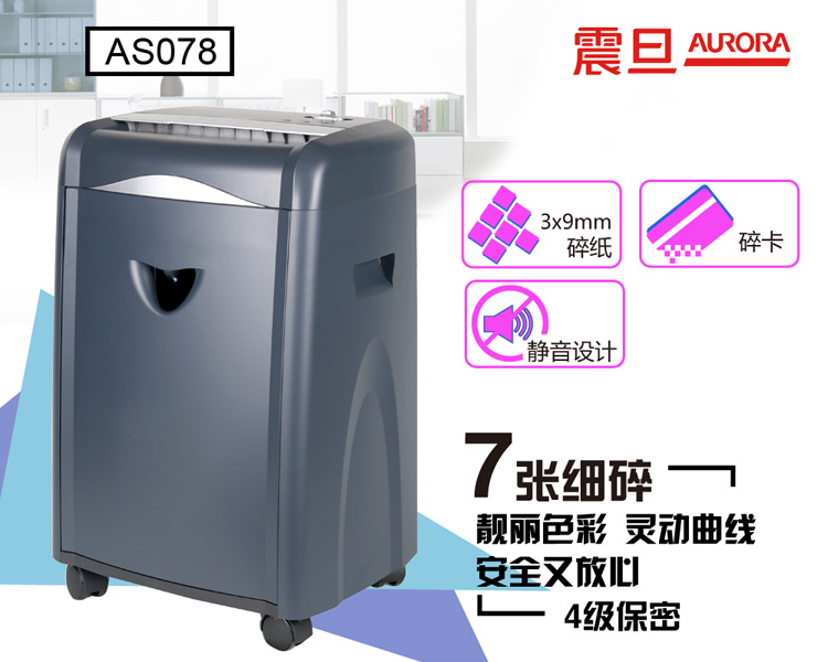 商品名称:震旦(AURORA)AS078 专业大容量高保密办公碎纸机(单次碎纸7张/碎卡/5级保密/静音) 黑色