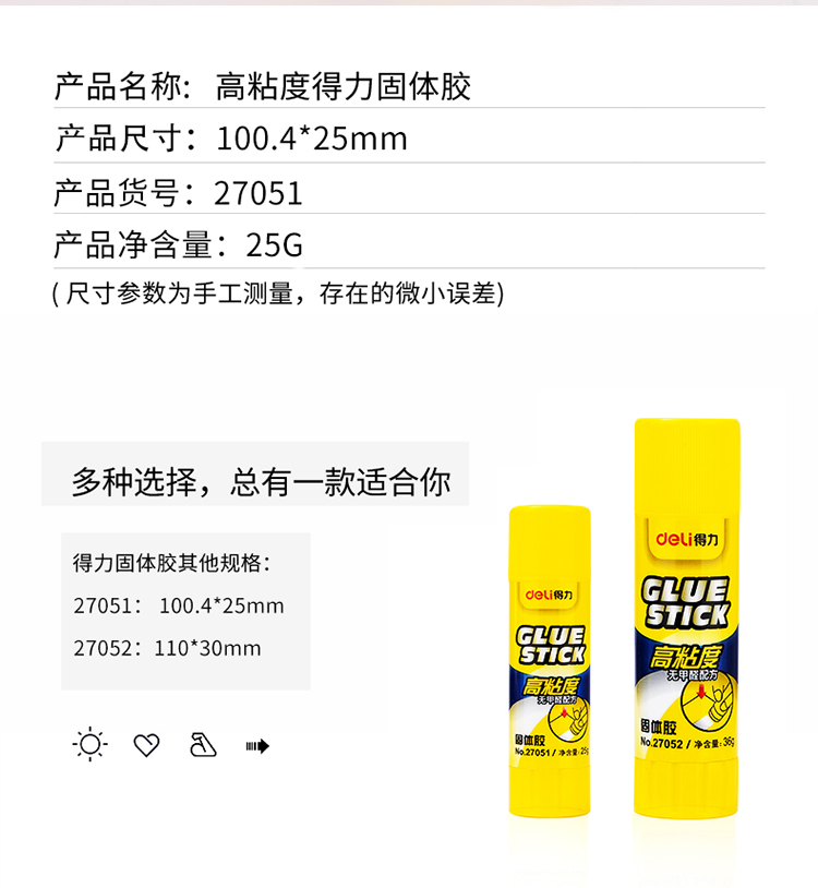 - 商品名称:得力(deli) 27051 高粘性固体胶棒 25g