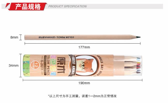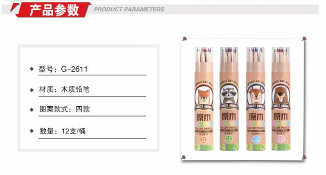 商品名称:金万年 G-2611 原木彩色铅笔圆纸桶装12色木杆铅笔 (计价单位:筒)