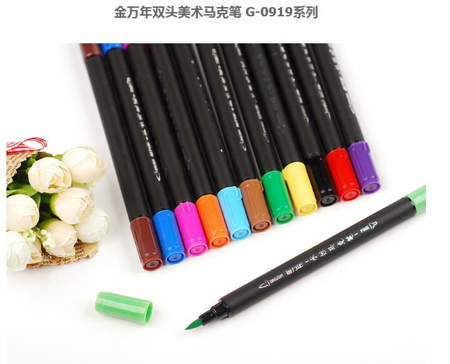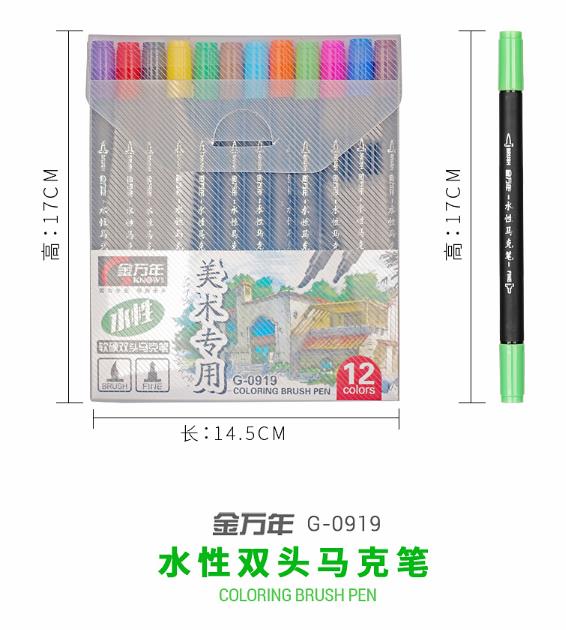 商品名称:金万年 G-0919B 水性墨水软硬双头36色套装马克笔