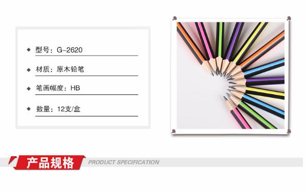 商品名称:金万年 G-2620 三角杆荧光漆抽条HB木杆铅笔-多颜色