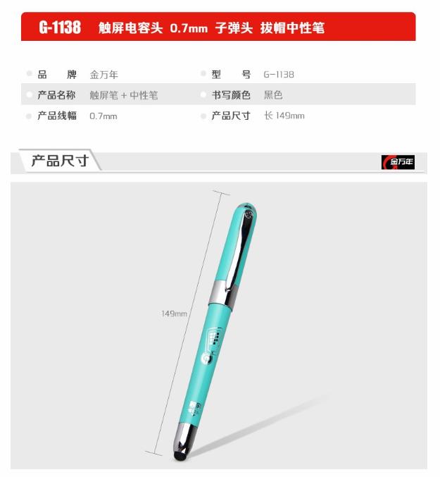 商品名称:金万年 G-1138 触屏电容头0.7mm子弹配RS14系列芯拔帽中性笔 黑色 (计价单位:支)