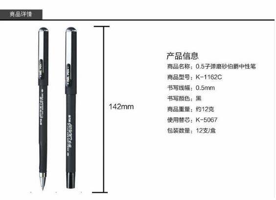 商品名称:金万年 K-1162C 伯爵钢夹漆杆0.5mm子弹头配RS07系列拔帽中性笔