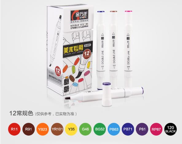 金万年 G-0961 美术专用12色橡胶头软硬双头马克笔套装-多颜