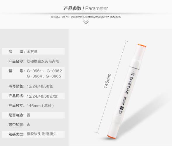 商品名称:金万年 G-0961 美术专用12色橡胶头软硬双头马克笔套装-多颜