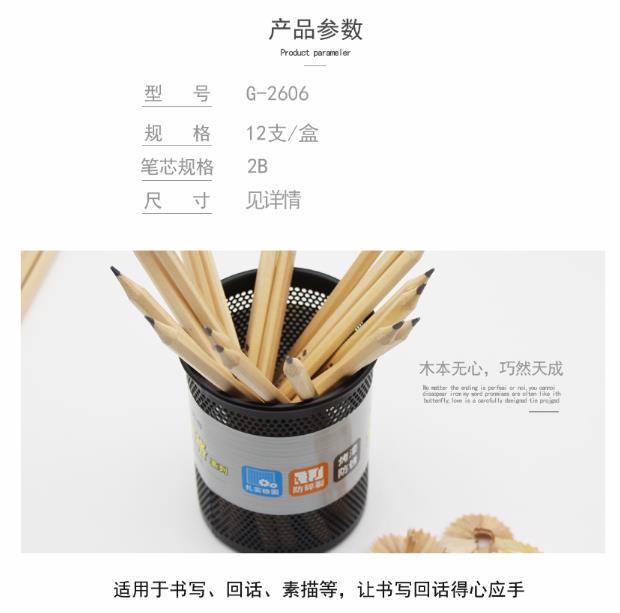 商品名称:金万年 G-2606 (2B) 2B原木无漆毒木杆铅笔-无