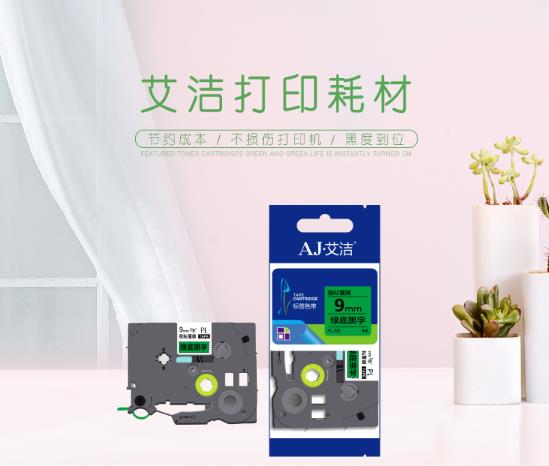 商品名称:艾洁 标签带9mm绿底黑字 PL-721 适用兄弟PT-1010;1100CH;1280;1400;18R TZe-721标签机色带