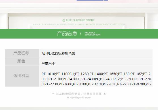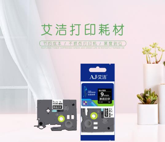 商品名称:艾洁 标签带9mm黑底白字 PL-325 适用兄弟PT-1010;1100CH;1280;1400;18R TZe-325标签机色带