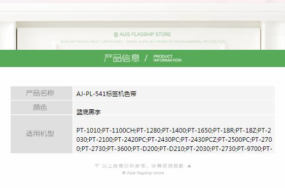 商品名称:艾洁 标签带18mm蓝底黑字 PL-541 适用兄弟PT-1010;1100CH;1280;1400;18R TZe-541标签机色带