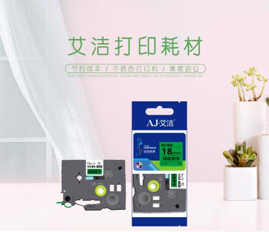 艾洁 标签带18mm绿底黑字 PL-741 适用兄弟PT-1010;1100CH;1280;1400;18R TZe-741标签机色带