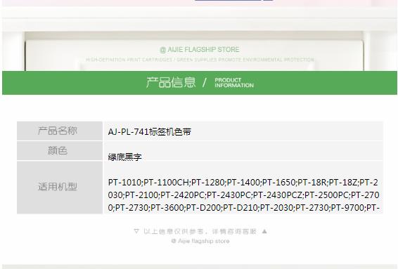 商品名称:艾洁 标签带18mm绿底黑字 PL-741 适用兄弟PT-1010;1100CH;1280;1400;18R TZe-741标签机色带
