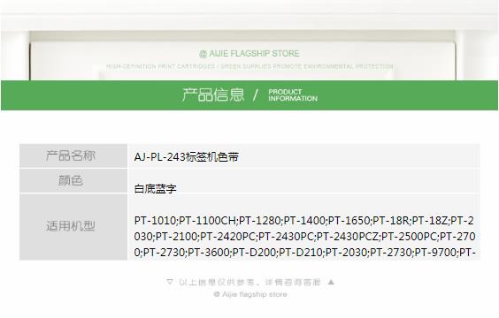 商品名称:艾洁 标签带18mm白底蓝字 PL-243 适用兄弟PT-1010;1100CH;1280;1400;18R TZe-243标签机色带