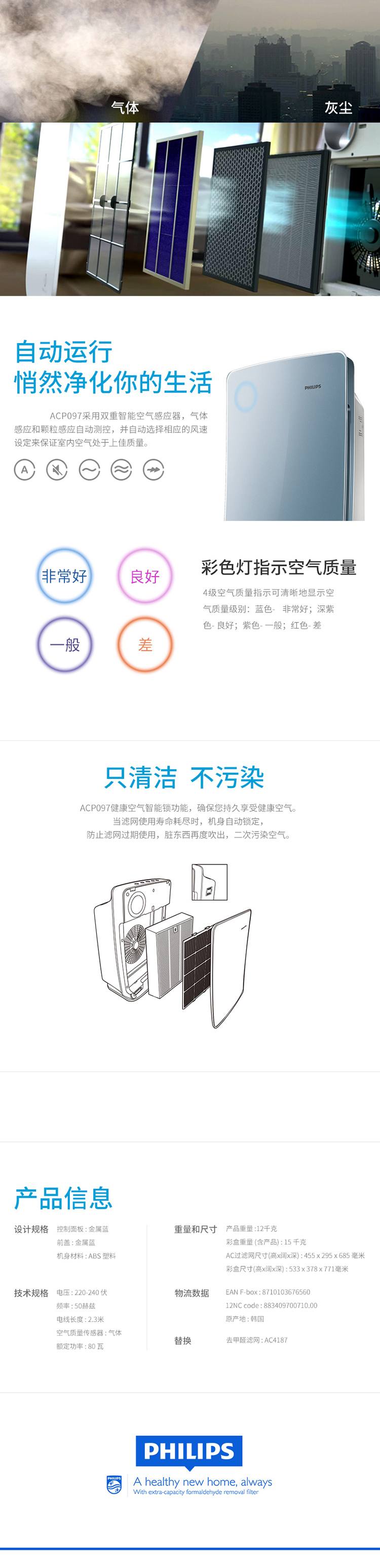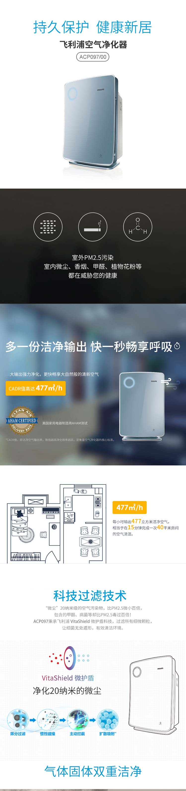 - 商品名称:飞利浦(PHILIPS) ACP097/00 空气净化器