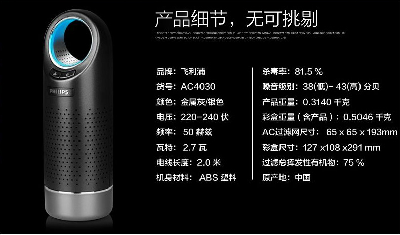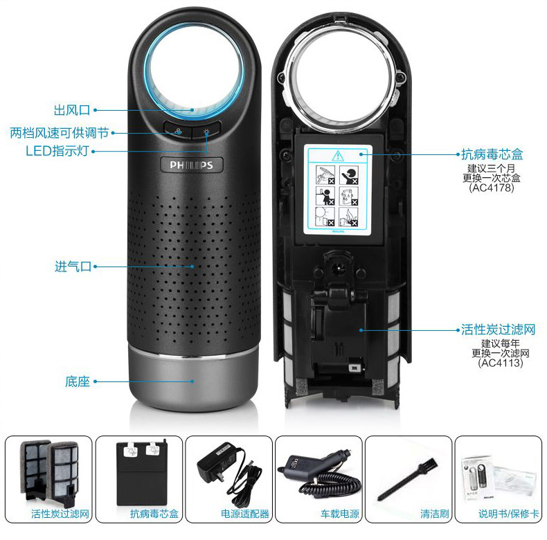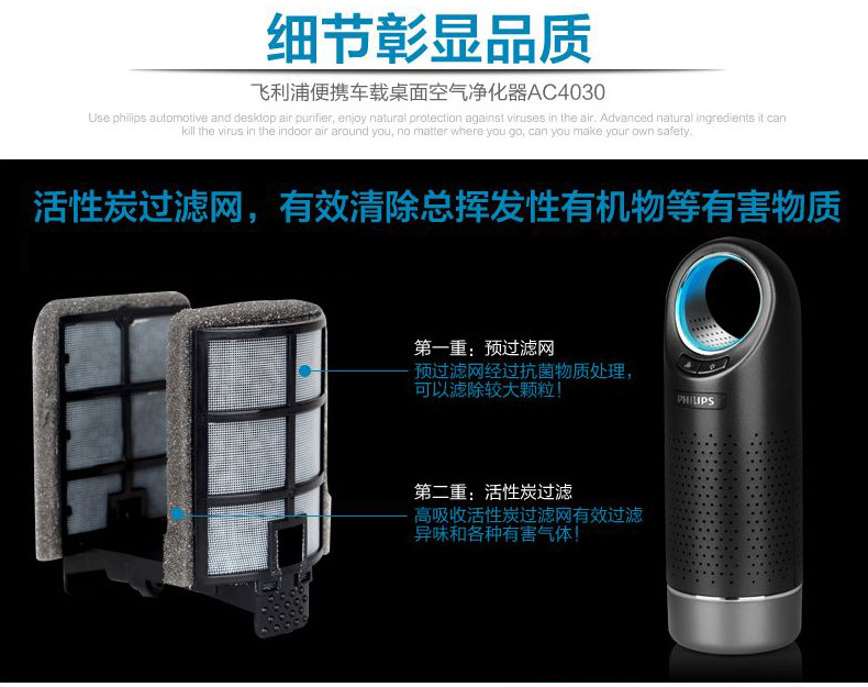商品名称:飞利浦(PHILIPS)AC4030/00 车载空气净化器 活性炭过滤除甲醛杀菌