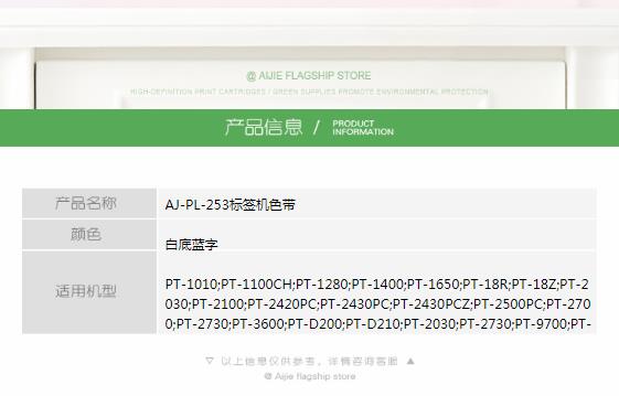 商品名称:艾洁 标签带24mm白底蓝字 PL-253 适用兄弟PT-1010;1100CH;1280;1400;18R TZe-253标签机色带