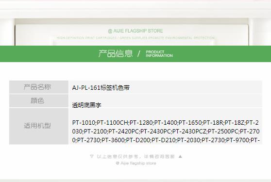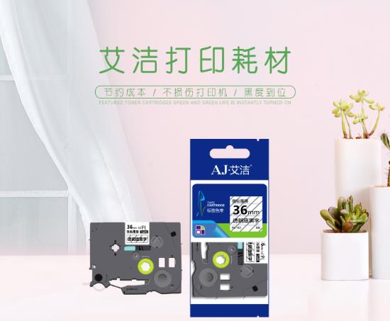 商品名称:艾洁 标签带36mm透明底黑字 PL-161 适用兄弟PT-1010;1100CH;1280;1400 TZe-161标签机色带