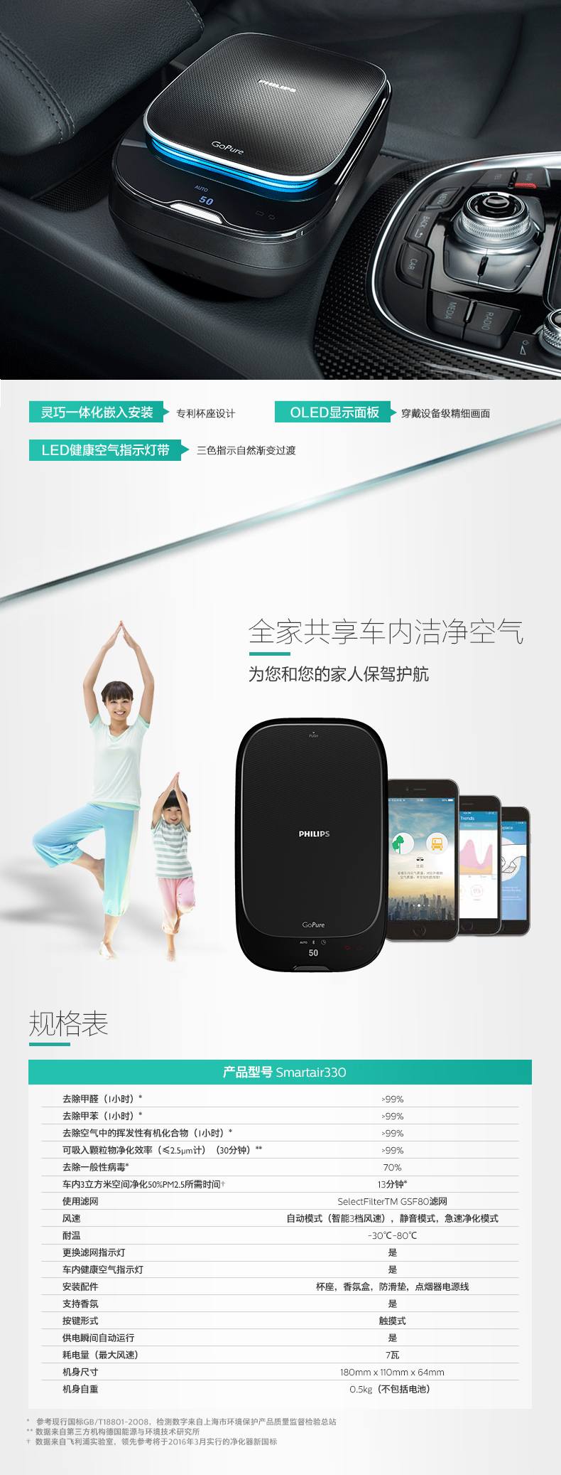商品名称:飞利浦车载空气净化器SMARTAIR330 去除甲醛PM2.5 新车异味