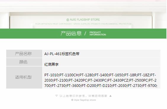 商品名称:艾洁 标签带36mm红底黑字 PL-461 适用兄弟PT-1010;1100CH;1280;1400;18R TZe-461标签机色带