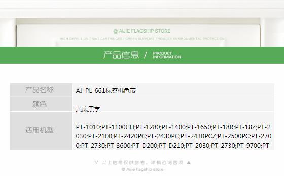 商品名称:艾洁 标签带36mm黄底黑字 PL-661 适用兄弟PT-1010;1100CH;1280;1400;18R TZe-661标签机色带