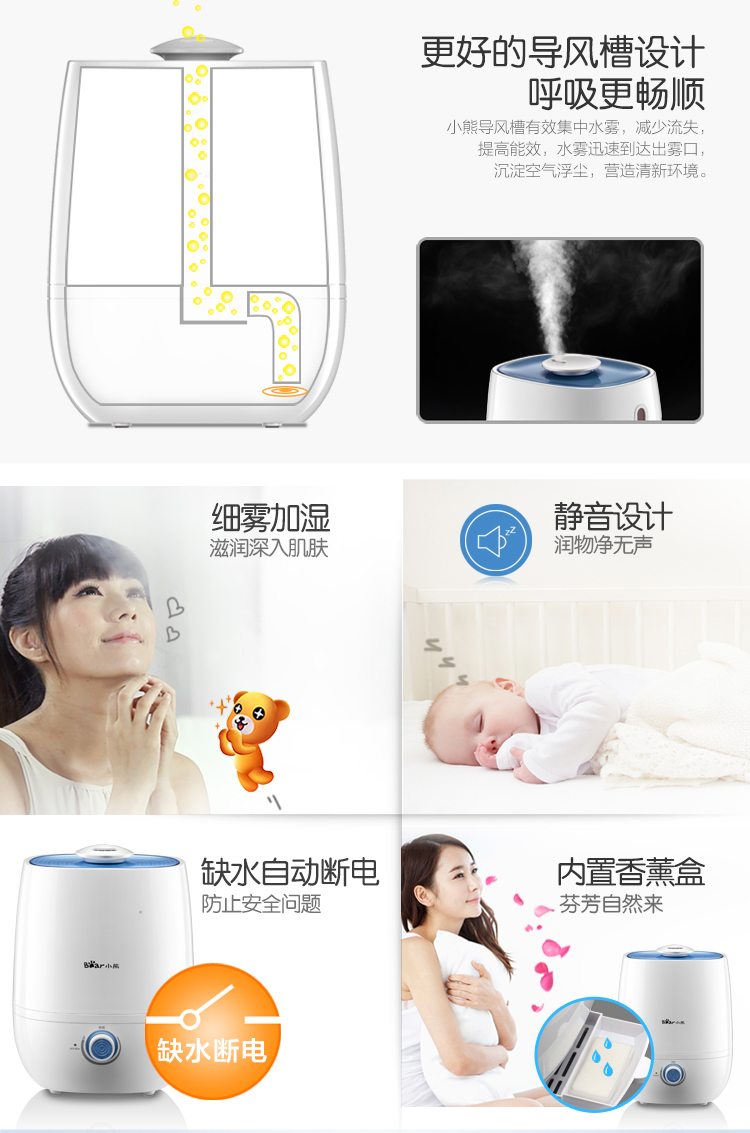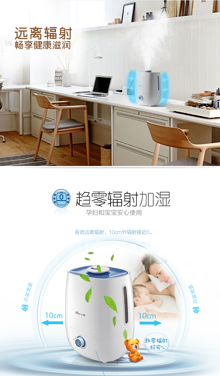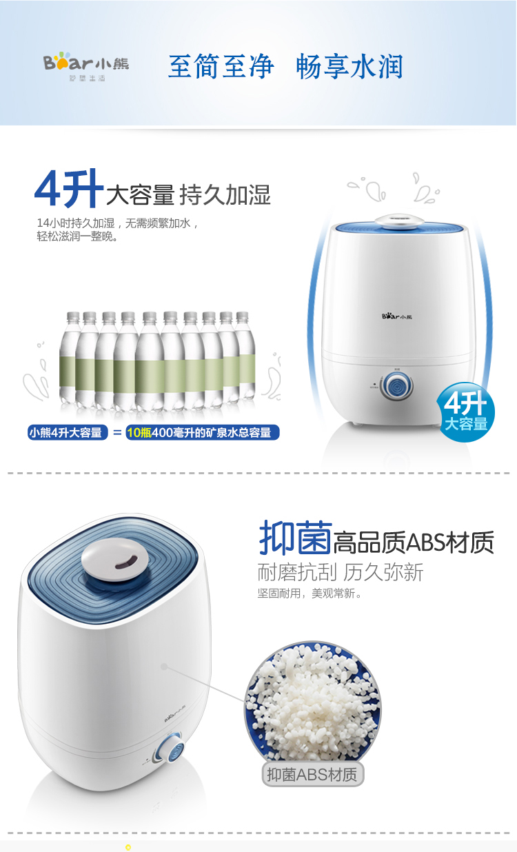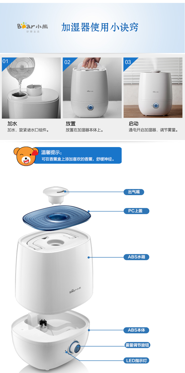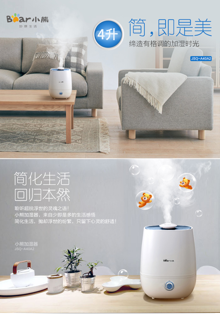 商品名称:小熊(Bear)JSQ-A40A2银离子抑菌加湿器 4升 办公室空气香薰静音 白色
