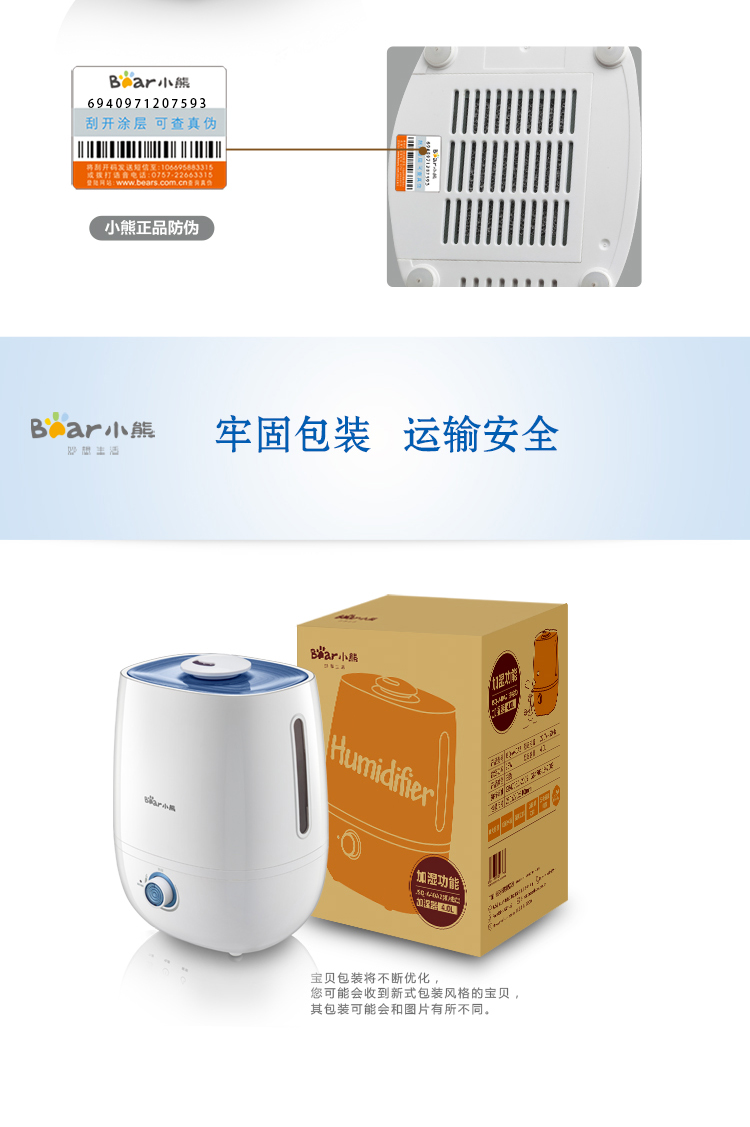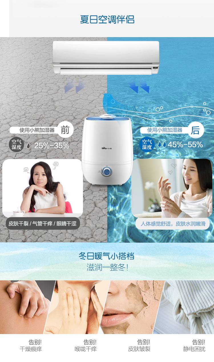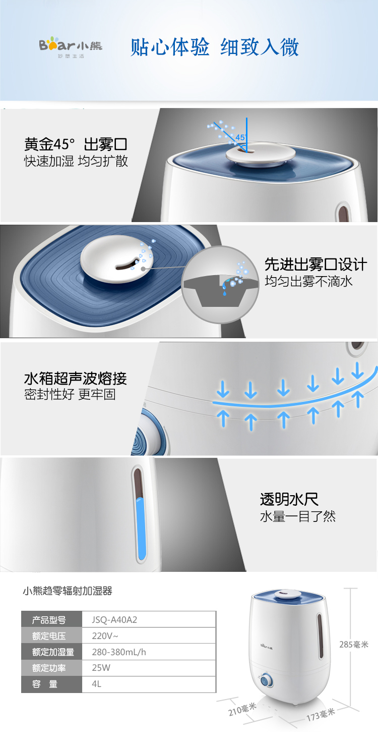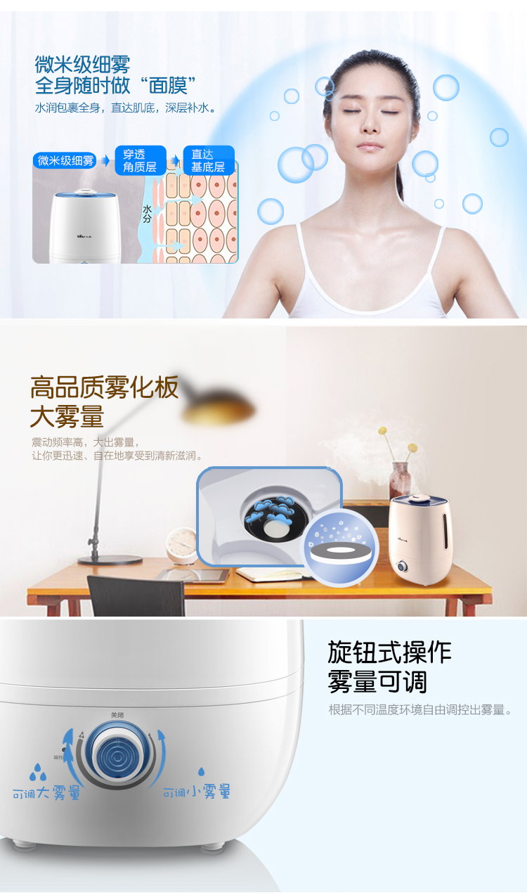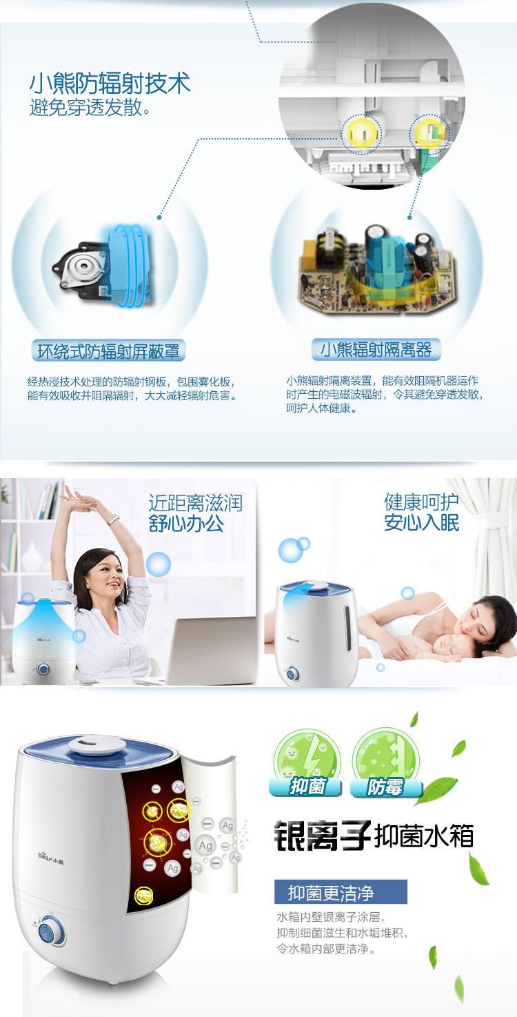 商品名称:小熊(Bear)JSQ-A40A2银离子抑菌加湿器 4升 办公室空气香薰静音 白色
