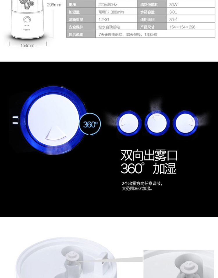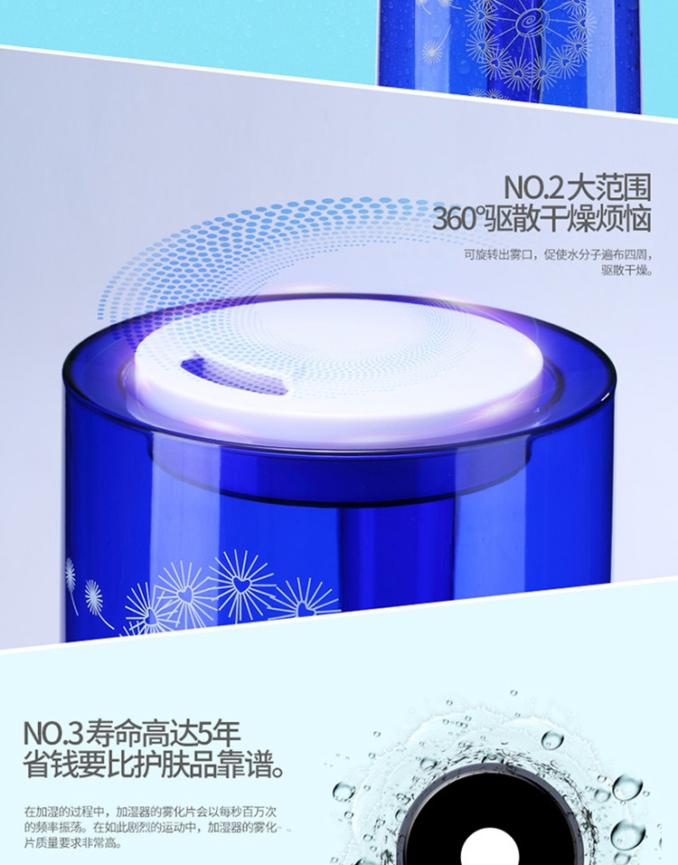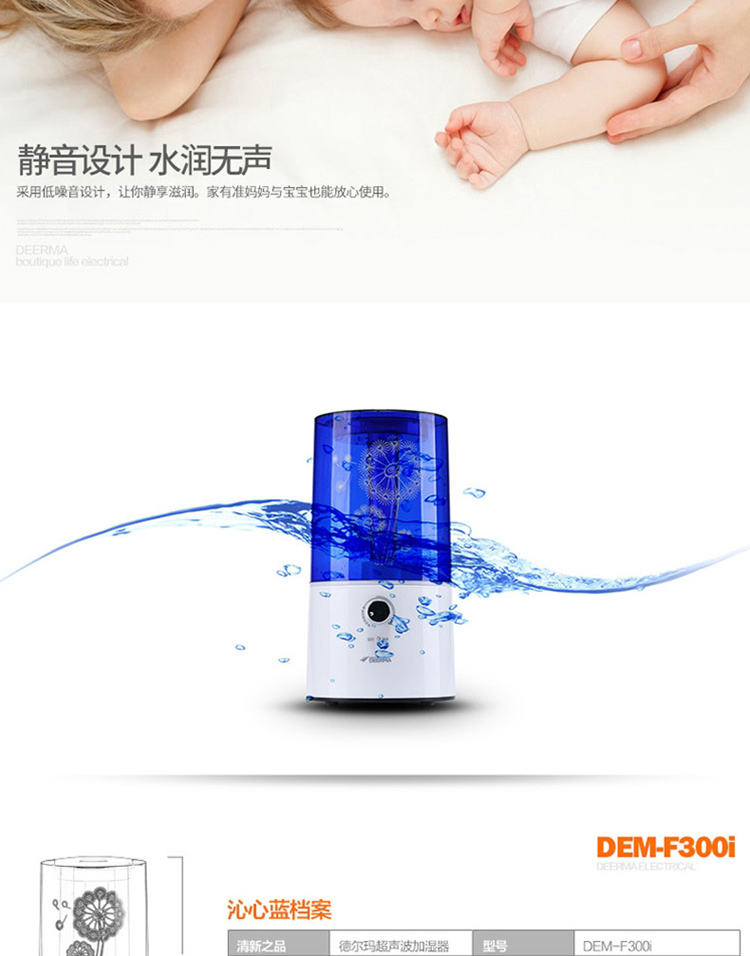 商品名称:德尔玛(Deerma)DEM-F300 3.0L超静音加湿器(蓝)