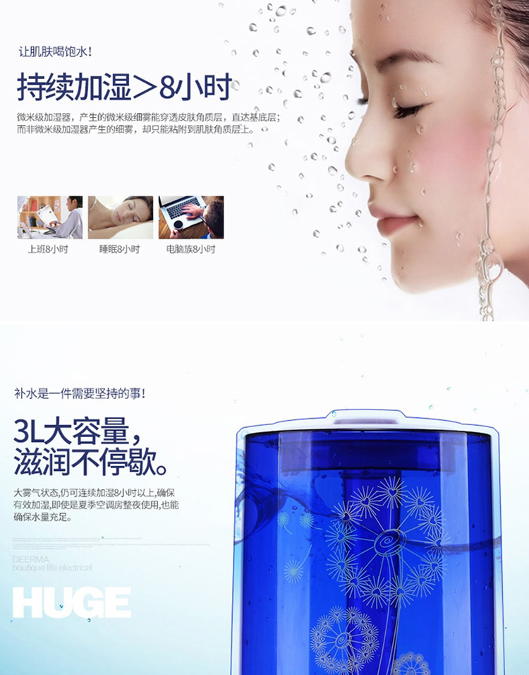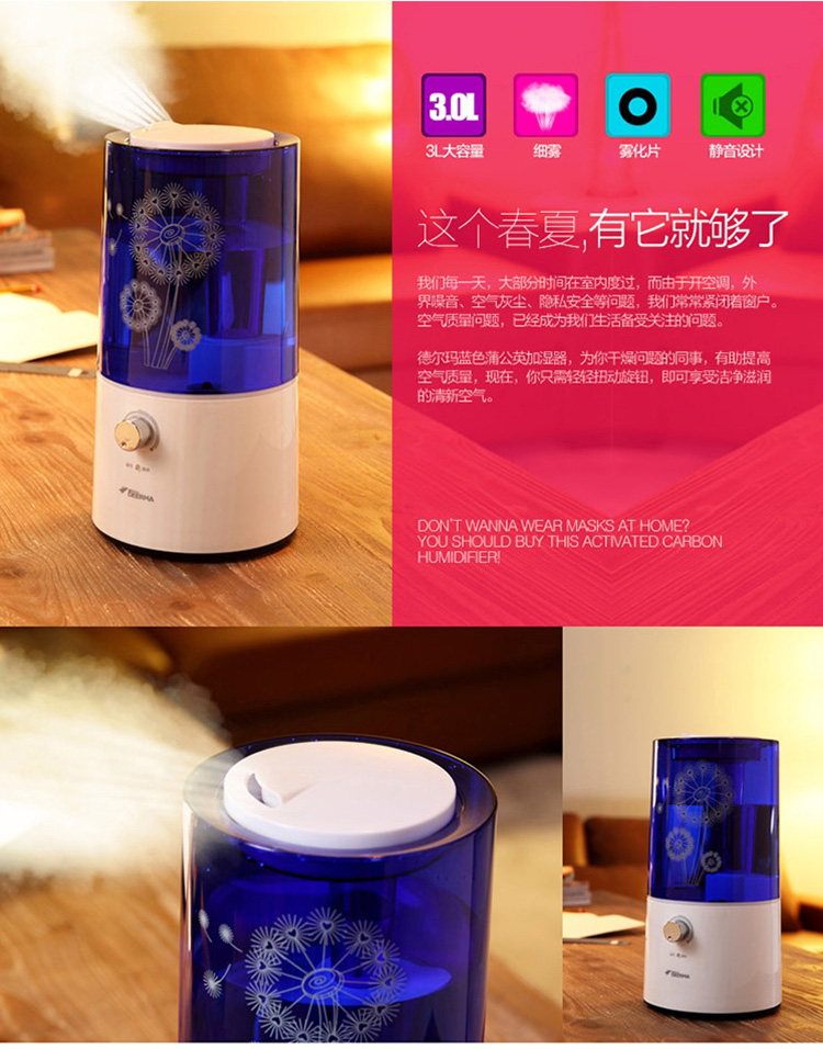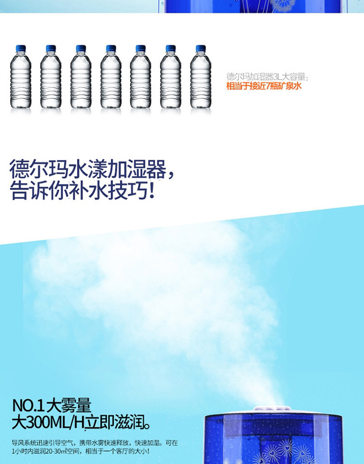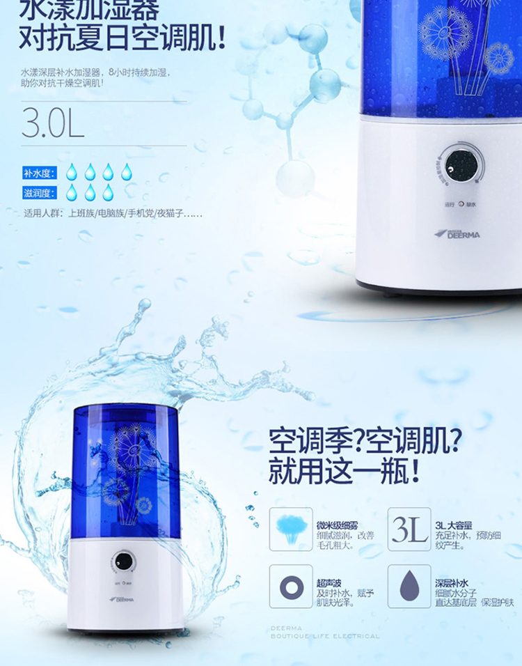 德尔玛(Deerma)DEM-F300 3.0L超静音加湿器(蓝)