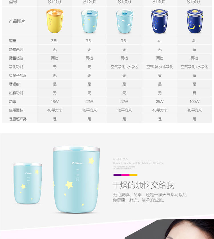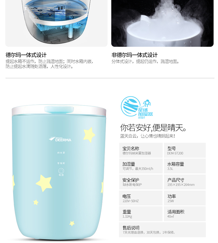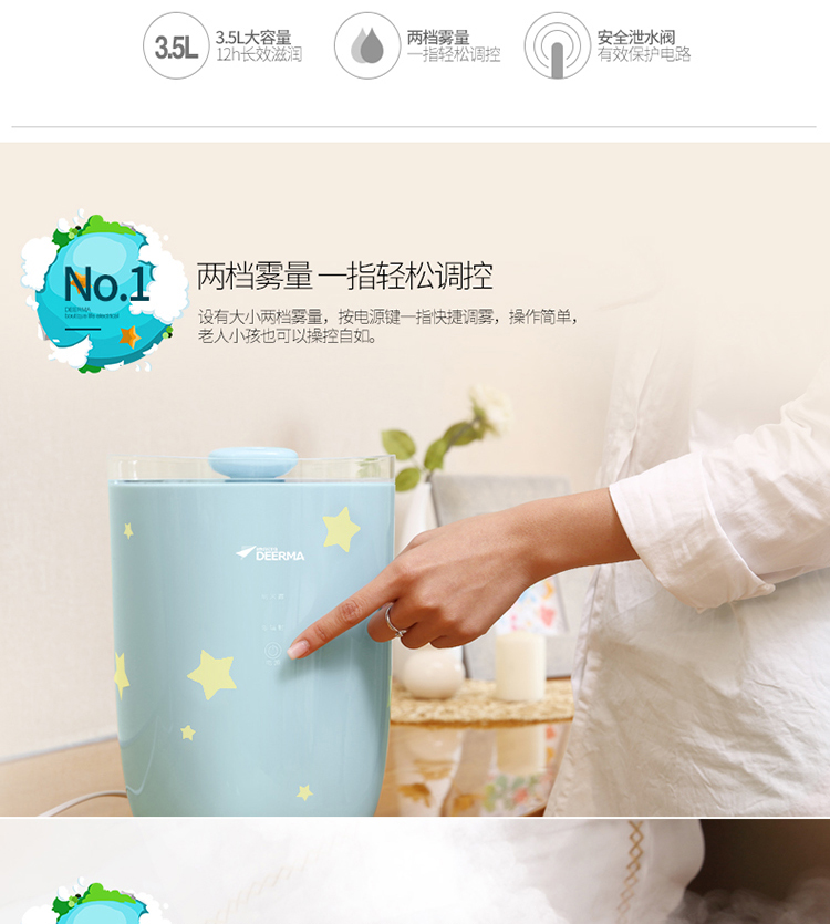 德尔玛(Deerma)DEM-ST200空气加湿器 家用静音 婴童亲肤加湿