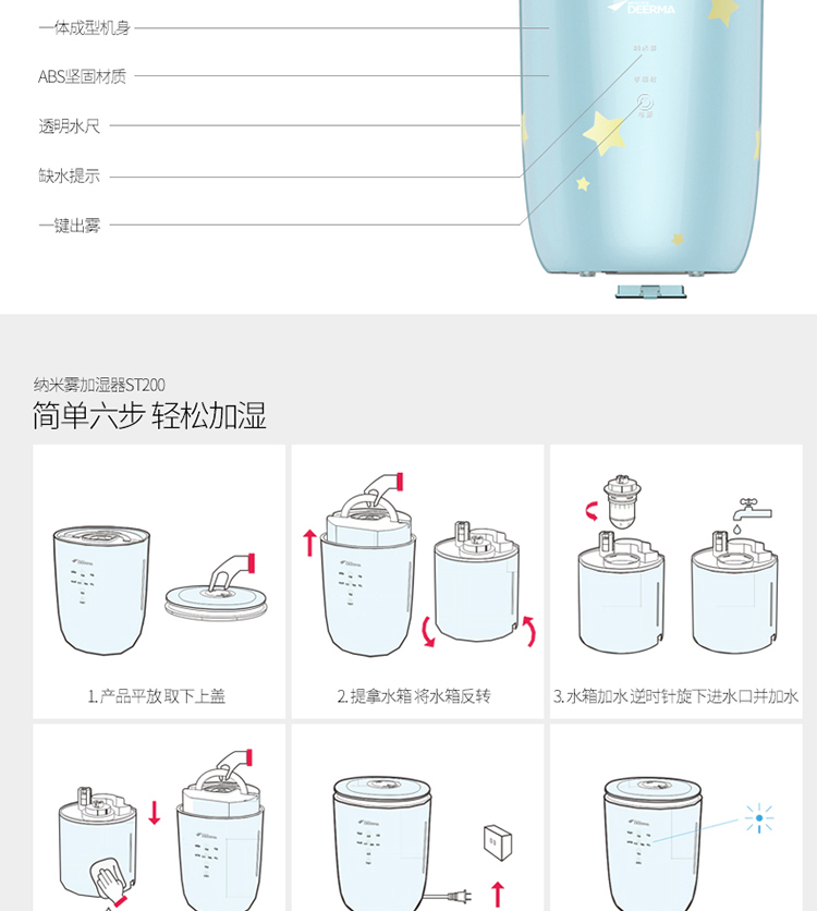 商品名称:德尔玛(Deerma)DEM-ST200空气加湿器 家用静音 婴童亲肤加湿