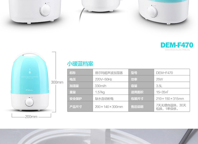 商品名称:德尔玛(Deerma)DEM-F470 3.5L 加湿器 家用 迷你 超静音