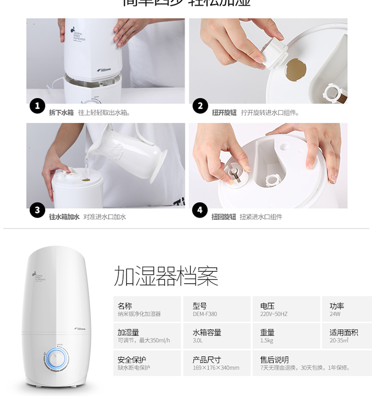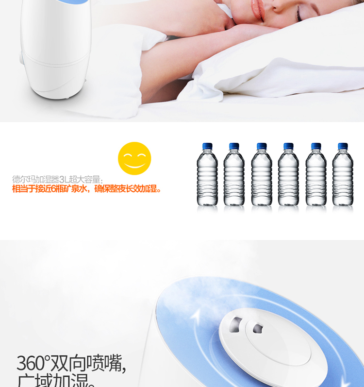 商品名称:德尔玛(Deerma)DEM-F380 3.0L 加湿器 家用 超静音