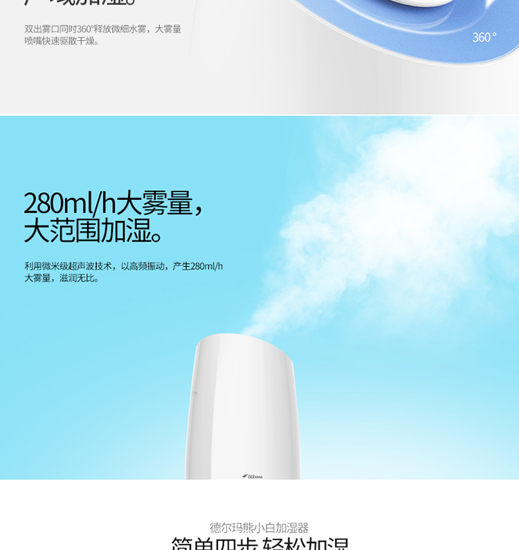 德尔玛(Deerma)DEM-F380 3.0L 加湿器 家用 超静音